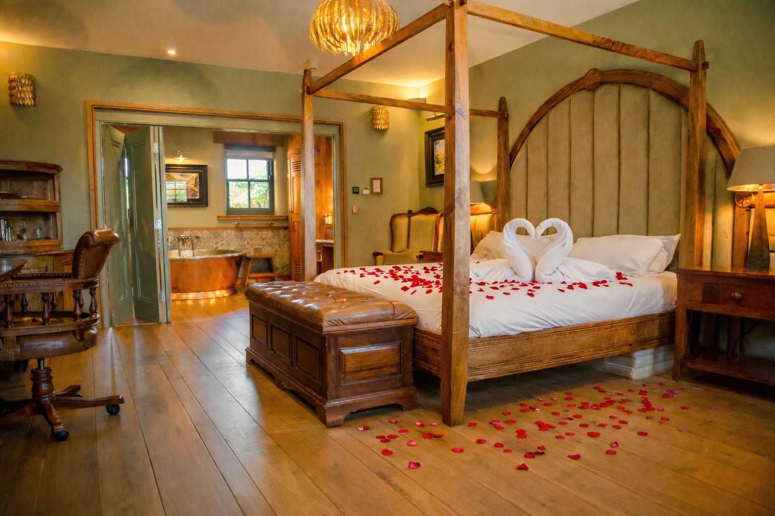 Complete your celebration with an overnight stay in our luxury Old Red Row rooms, just a short stroll from the pub and restaurant. These beautifully characterful rooms feature indulgent four-poster beds and striking copper bathtubs, making them perfect for a relaxing and romantic escape. To mark the occasion, add rose petals and a bottle of prosecco for an extra-special Valentine’s touch. (Surcharges apply)